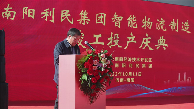 10月11日,南陽利民集團智能物流制造項目竣工投產(chǎn)慶典在宛城區(qū)舉行,宛城區(qū)區(qū)長樊牛出席并講話,區(qū) 陳明遠、劉文昌、賈迪、崔振世等參加。